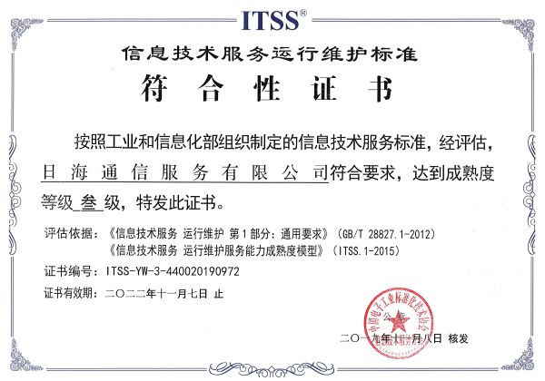 ITSS信息技术服务运行维护标准符合性证书(三级)