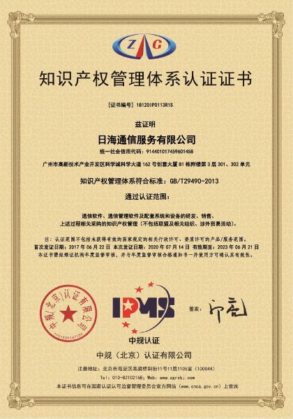 知识产权管理体系认证证书