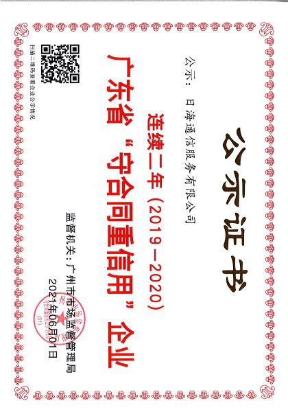 守合同重信用证书(2019-2020年)